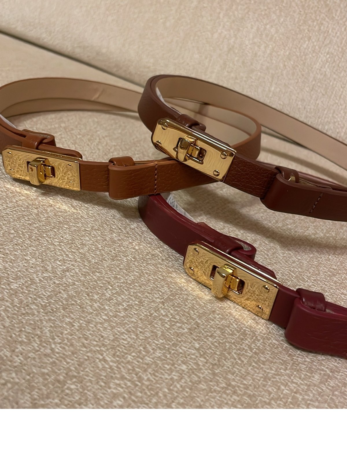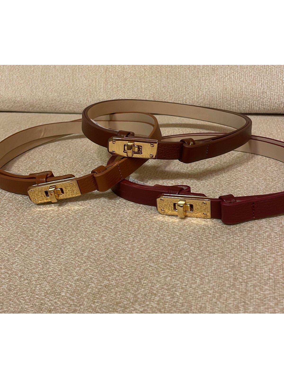Cinto em couro 100%, fivela dourada de fechamento frontal, modelo ajustável atrás podendo ser usado em varias alturas.