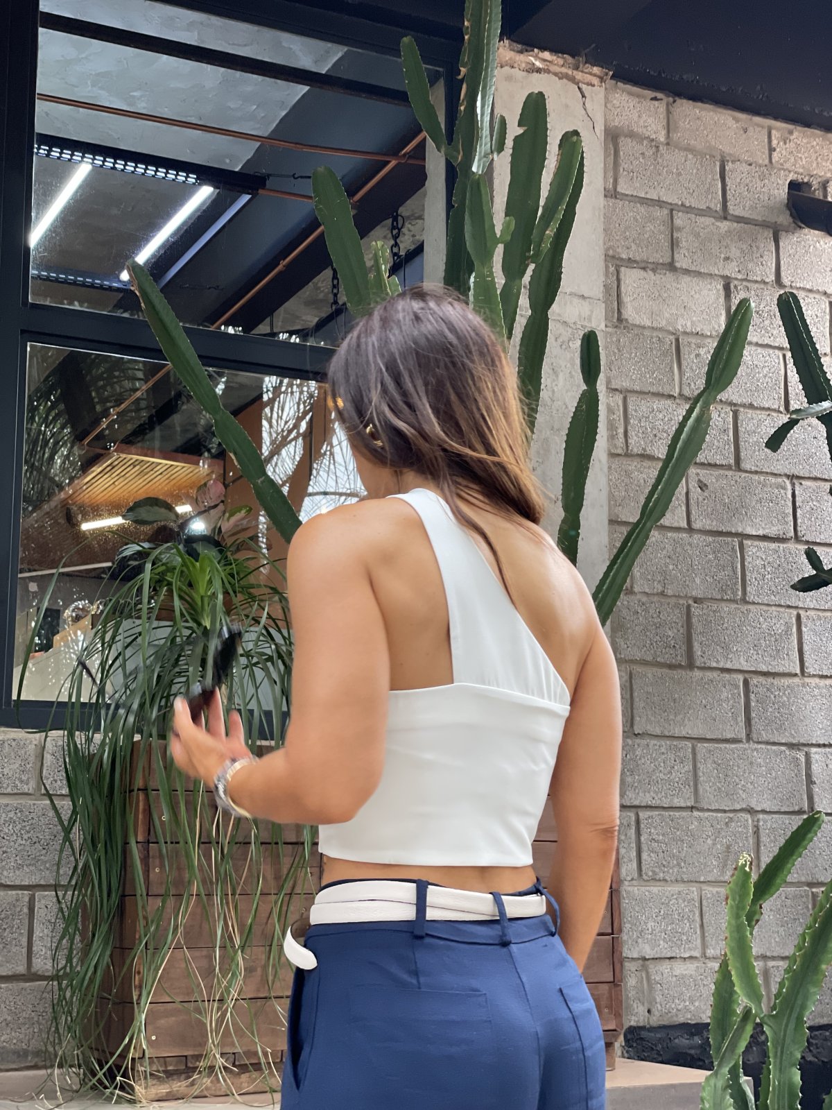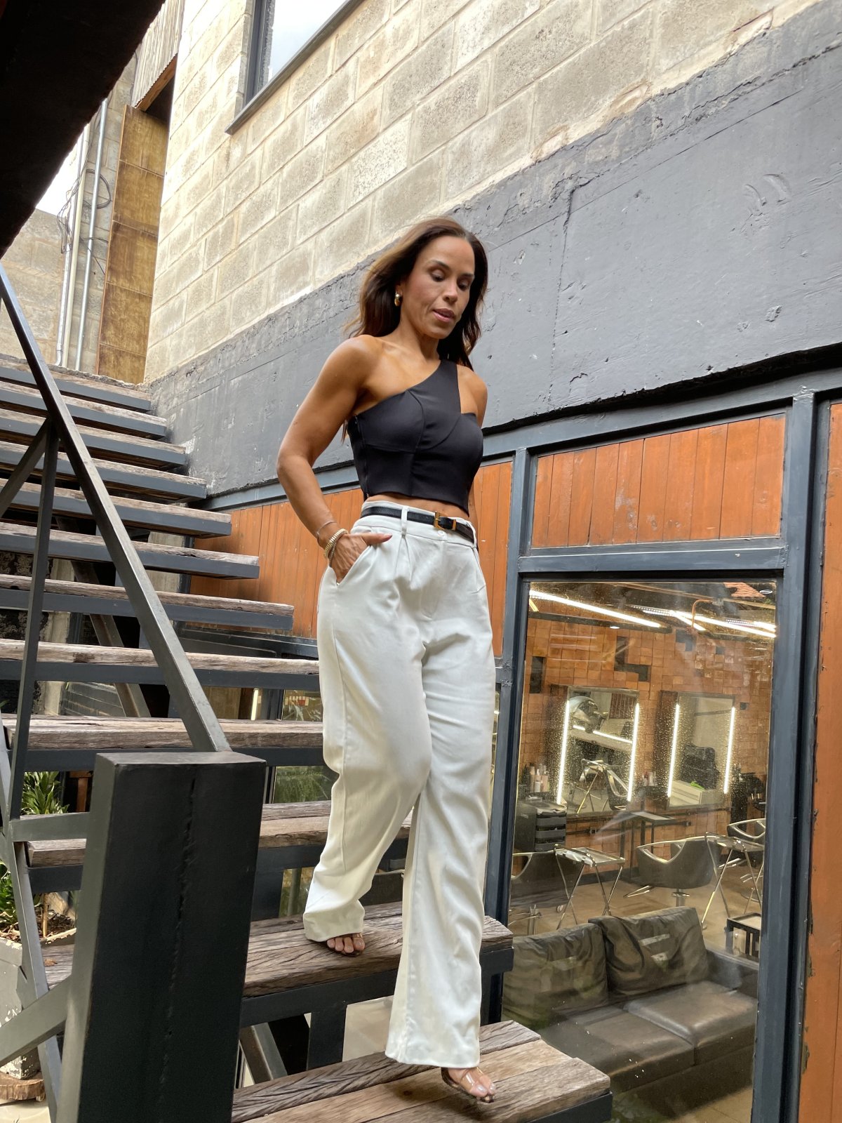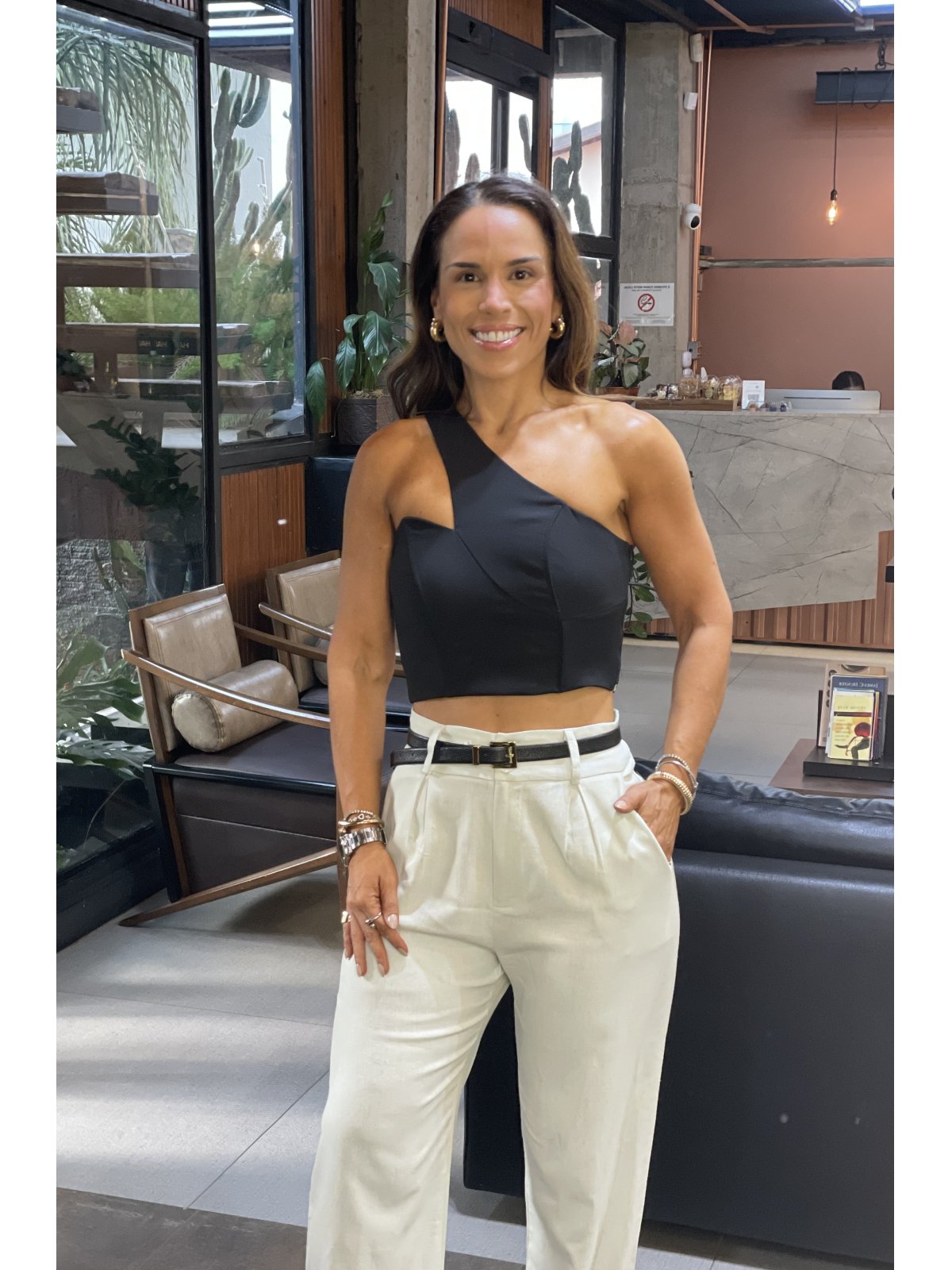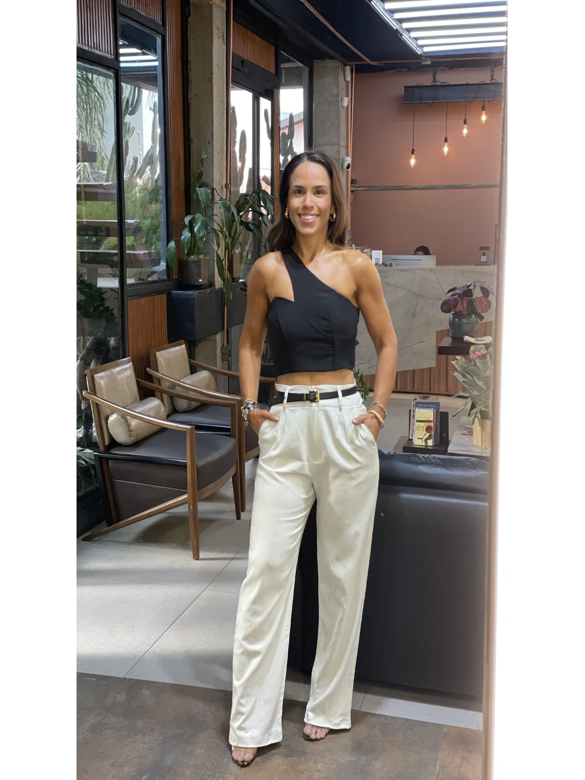 Corset assimétrico, fechamento em zíper na lateral, tecido todo duplo e encorpado (alfaiataria).