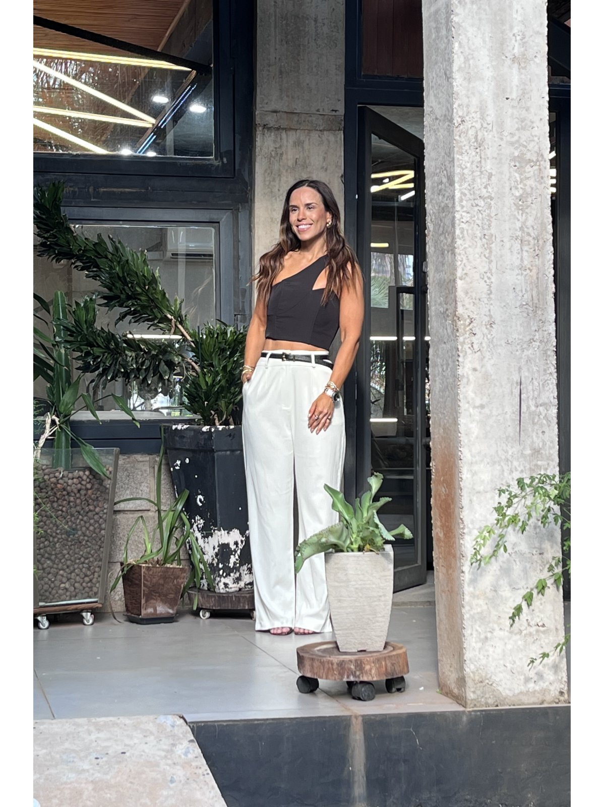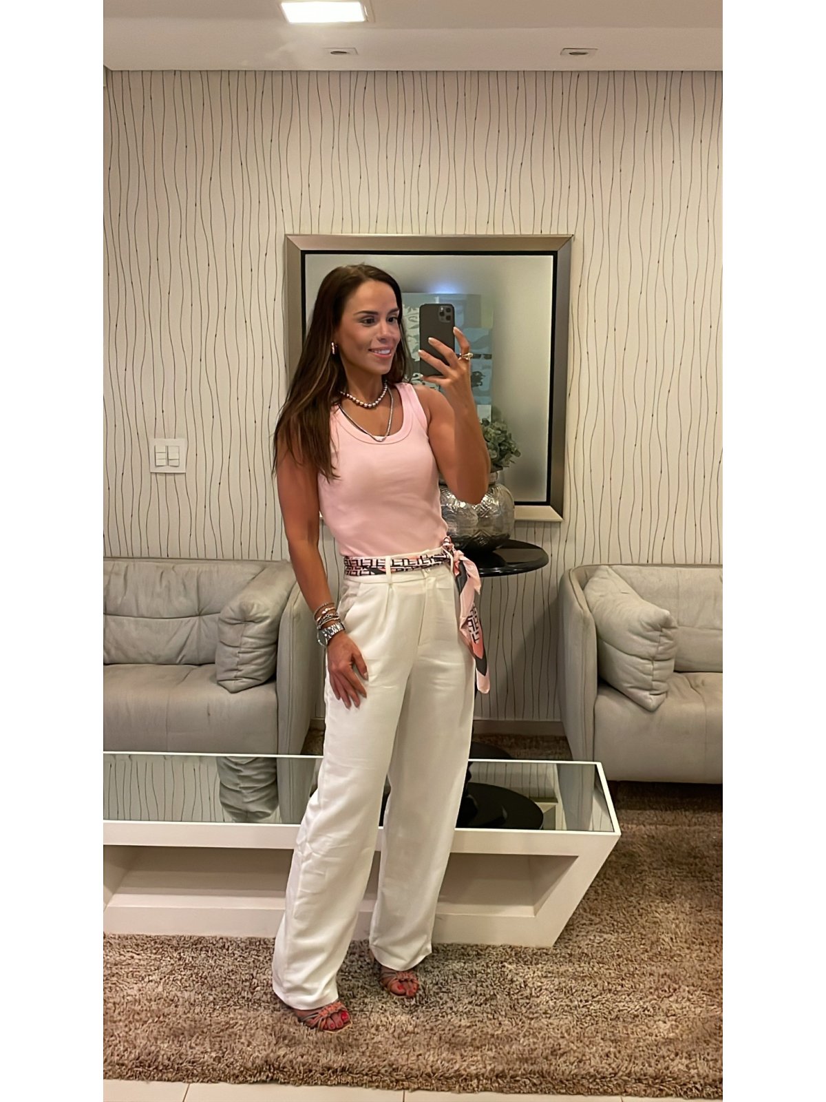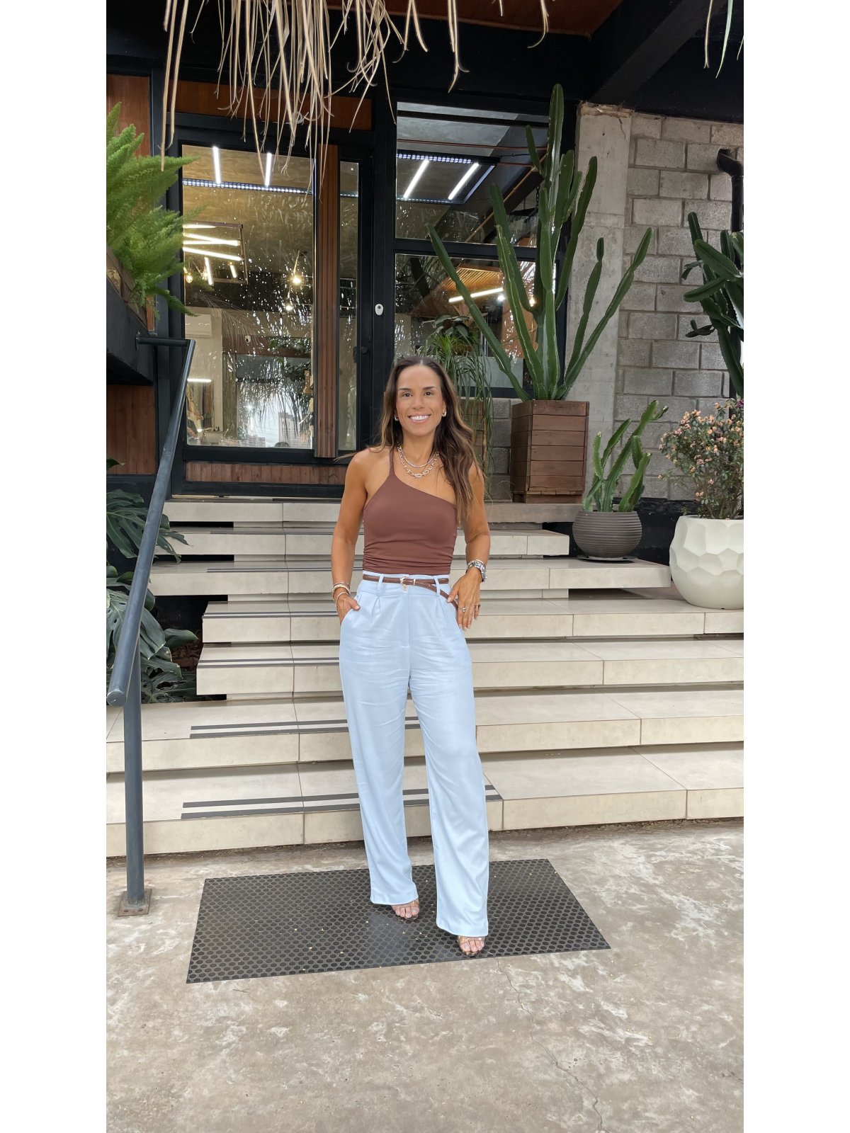 Calça em linho misto, bolsos faca nas laterais, possui passantes, botões duplos, e dois bolsos na parte de trás da calça.