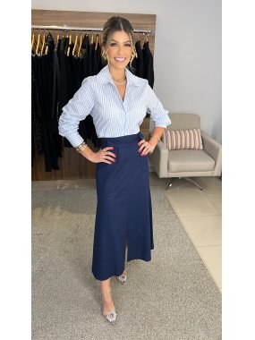Saia Midi, em linho, com amarração na cintura, fechamento de zíper atrás e fenda na frente - acompanha a faixa para ajustar a saia na cintura.