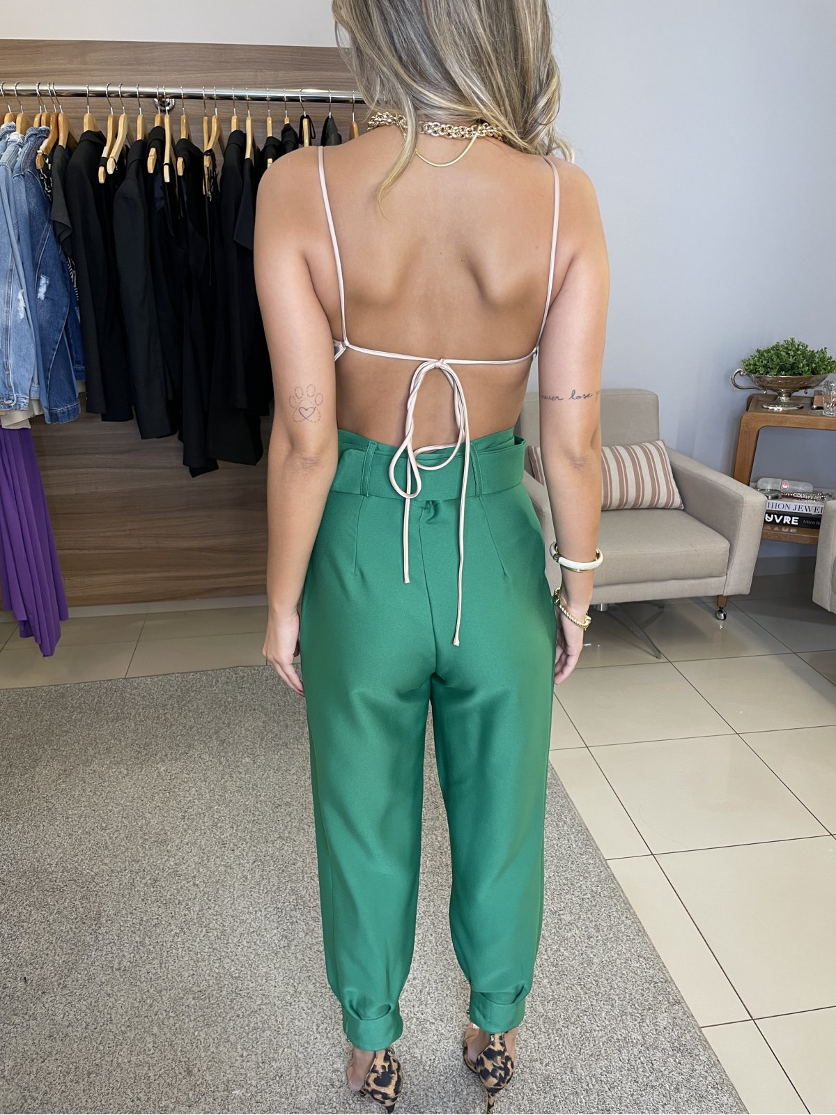 Top em alfaiataria com toque acetinado, com detalhe drapeado na frente e tiras finas para amarração nas costas (sem bojo).